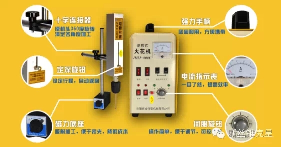信成精密自主產(chǎn)品便攜式取斷絲錐電火花機(jī),采用電腐蝕原理,去除斷在工件中的絲錐、鉆頭、螺釘、塞規(guī)、鉸刀以及大螺栓等,方便解除您加工中的煩惱。信成工以高品質(zhì)、優(yōu)服務(wù)贏得廣大用戶(hù)的贊賞。