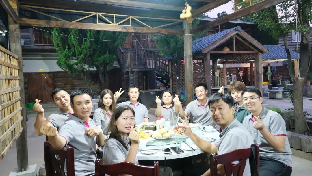 傍晚時分,車隊驅(qū)車而下,來到農(nóng)家四合院,體驗特色美食;席前丁董、袁總、婷總發(fā)言,表達(dá)對大家工作成績的肯定和鼓勵。